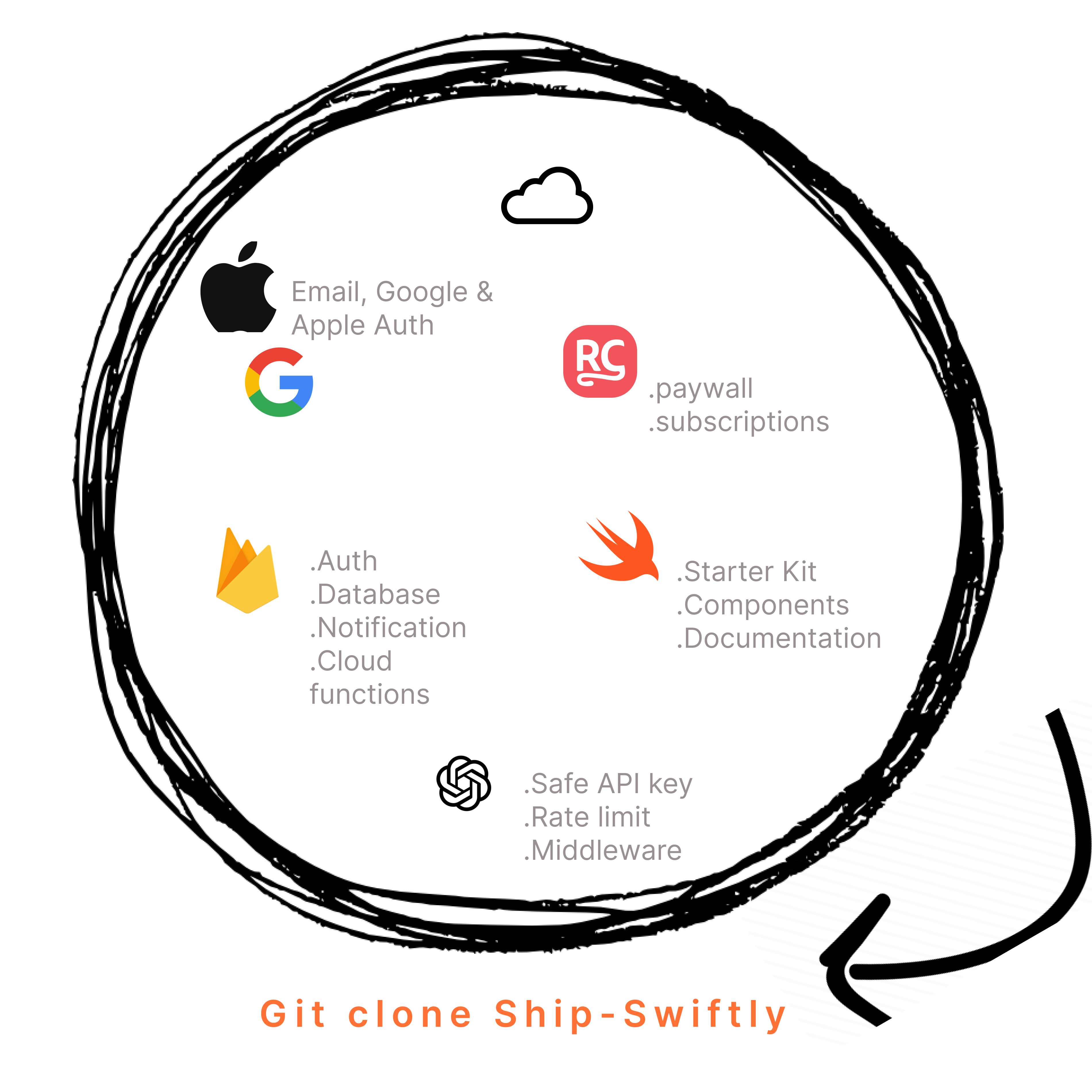 SwiftUI boilerplate Google / Apple Authentication Full Firebase integration RevenueCat integration Code updates Full, clear documentation + video tutorials Secure Production-Ready Backend for OpenAI (written in swift)